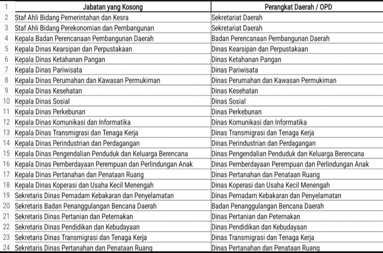 Hal ini mengakibatkan sejumlah posisi harus dirangkap oleh pejabat lain agar pelayanan publik tetap berjalan.
