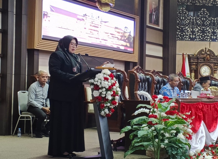 Jubir Bapemperda DPRD Kukar, Fathlon Nisa Tengah Membacakan Nota Penjelasan.(Foto:Indri)