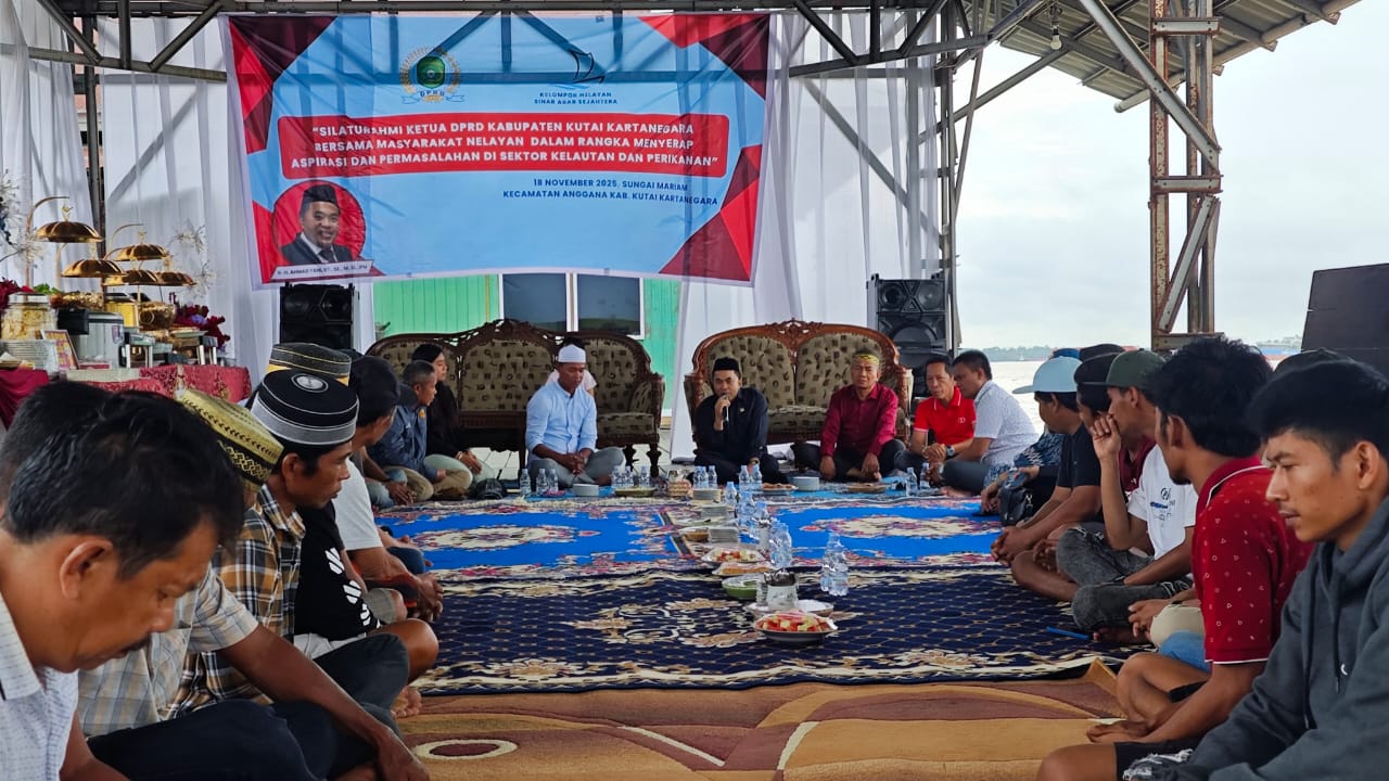 KUKAR, (KutaiRaya) : Ketua DPRD Kabupaten Kukar Ahmad Yani, melaksanakan kunjungan sekaligus bersilaturahmi bersama masyarakat nelayan Kecamatan Anggana, dalam rangka menyerap aspirasi dan permasalahan disektor kelautan dan perikanan, berlangsung di Desa Sungai Mariam, Kecamatan Anggana, Kabupaten Kukar, Selasa (18/11/2025).
