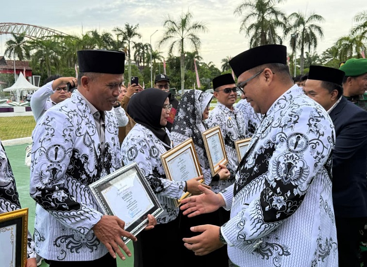 Penyerahan Penghargaan Kepada Guru Berprestasi di Bidang Olahraga.(Andri wahyudi/kutairaya)