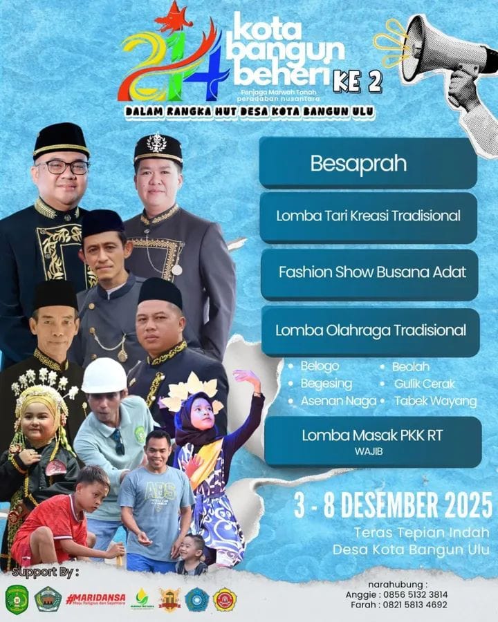 TENGGARONG, (KutaiRaya.com) : Desa Kota Bangun Ulu (KBU), Kecamatan Kota Bangun, Kabupaten Kutai Kartanegara, kembali bersiap merayakan Hari Ulang Tahun (HUT) ke 214 yang akan berlangsung pada 3-8 Desember 2025.