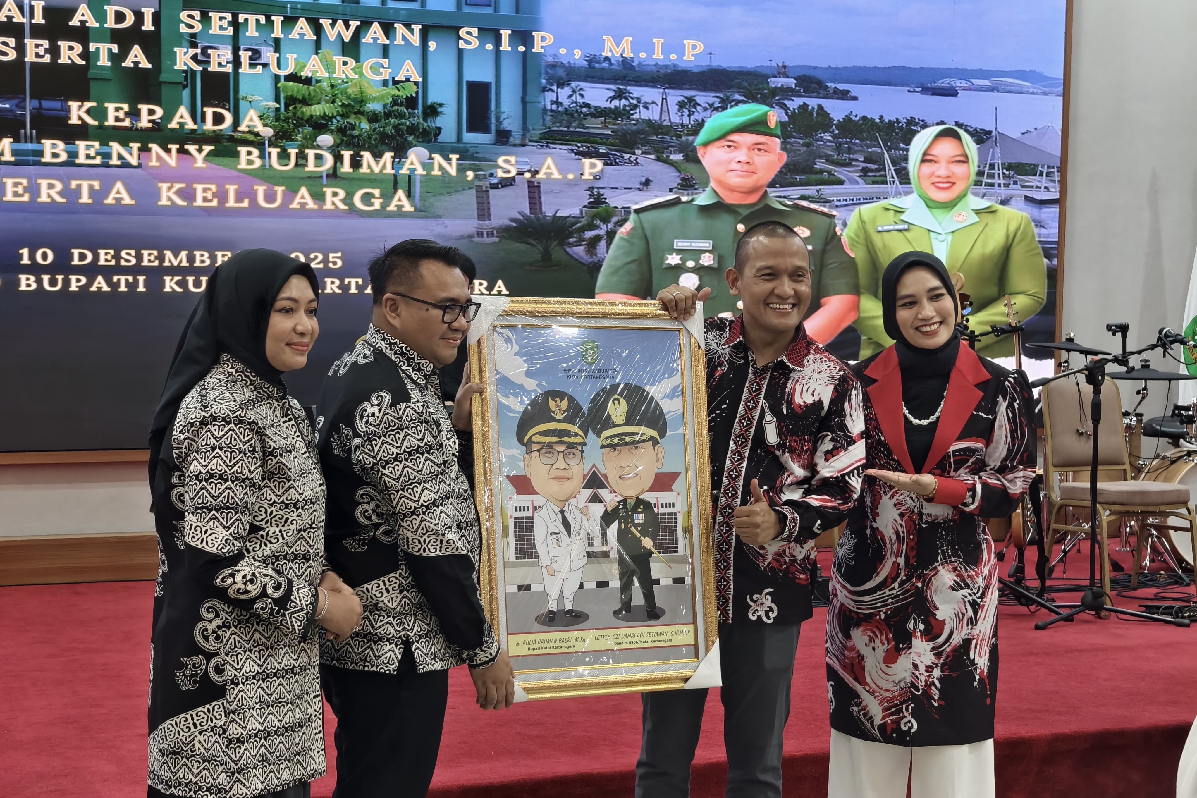 TENGGARONG, KutaiRaya.com - Bupati Kutai Kartanegara (Kukar), Aulia Rahman Basri menghadiri malam pisah sambut Komandan Kodim 0906 Kukar dari Letkol Czi Damai Adi Setiawan kepada Letkol Arm Benny Budiman yang digelar di Pendopo Odah Etam, Tenggarong, Rabu (10/12/2025).