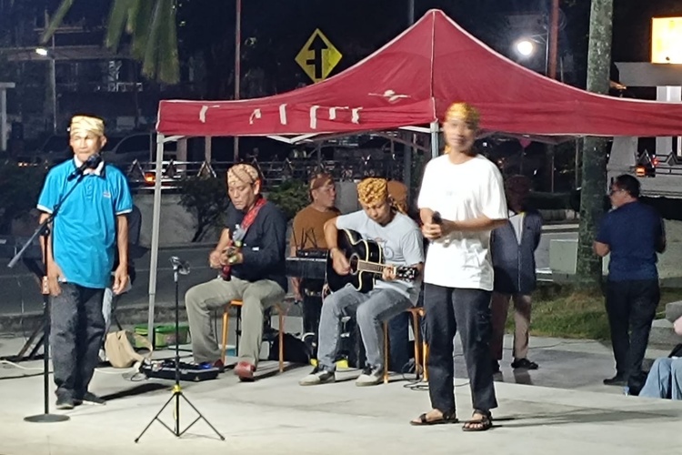 Hiburan tersebut dipersembahkan oleh Grup Musik Takeru, yang rutin tampil untuk menghibur masyarakat di Taman Titik Nol.