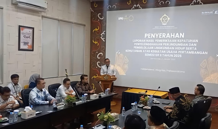 BPK Kaltim melaporkan Hasil Pemeriksaan BPK Kepatuhan Penyelenggaraan Perlindungan dan Pengelolaan Lingkungan Hidup Serta Kehutanan Atasan Kegiatan Usaha Pertambangan Tahun Anggaran 2023 sampai dengan Triwulan Ketiga 2025, di Kantor Perwakilan BPK Kaltim, yang turut dihadiri oleh Seno Aji selaku Wakil Gubernur Kalimantan Timur (Wagub Kaltim).