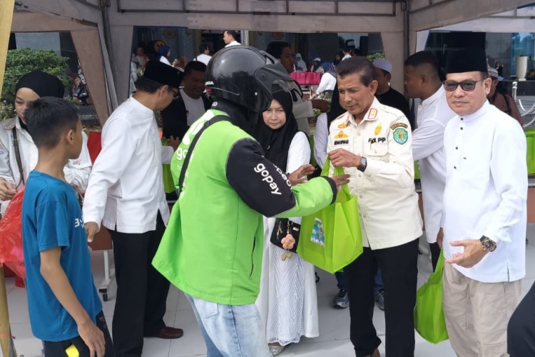 Kepala Satpol PP Kaltim, Munawwar, saat sedang membagikan Takjil Gratis buat masyarakat yang hadir.(Foto : Abi/KutaiRaya)