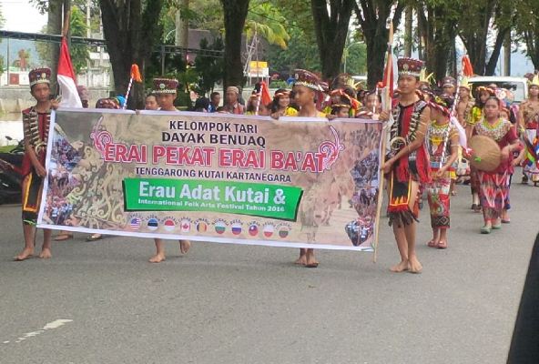 Suasana meriah terlihat di Kota Raja Tenggarong sejak Sabtu (20/8/2016) pagi, Ratusan masyarakat Tenggarong dan sekitarnya rela berdesakan di badan jalan mulai dari JL. KH Akhmad Muksin, JL. Jend. Sudirman, JL. S.Parman hingga Jl. Monumen Timur depan Kedaton Kukar, guna menyaksikan Kirab Budaya Internasional yang diikuti 9 negara peserta Erau Adat Kutai and 4th International Folklore and Art Festival (EIFAF) 2016, serta 30 sanggar tari dan paguyuban di Kukar.