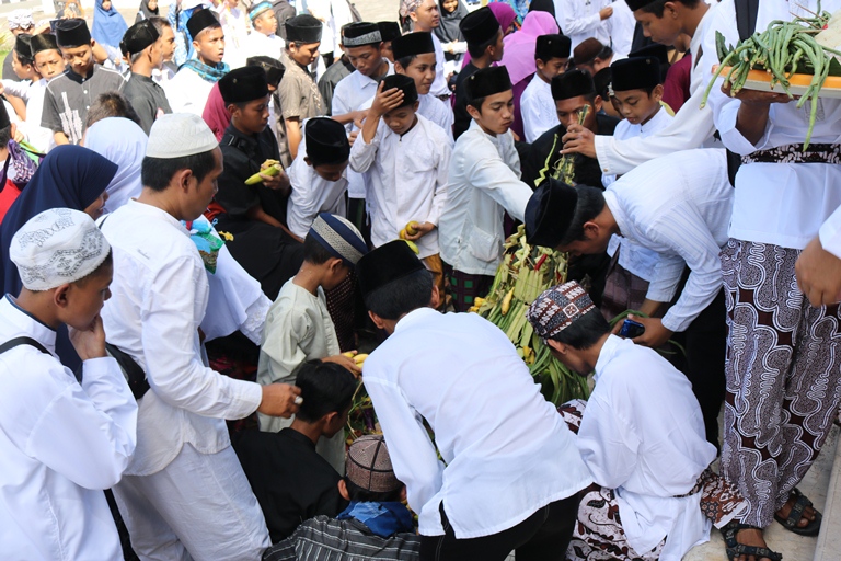 Sesampainya dikedaton,makanan yang dibawa tersebut didoa kemudian diambil oleh para peserta.