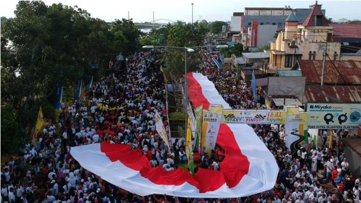 Dalam rangkaian acara tersebut dilaksanakan senam zuma, kemudian jalan sehat, senam kolosan, pelepasan burung merpati, kemudian deklarasi penandatangan dikain sepanjang 350 meter, pembentangan bendera merah putih sepanjang 150 meter, dan pada puncaknya adalah hiburan dan pembagian hadiah.