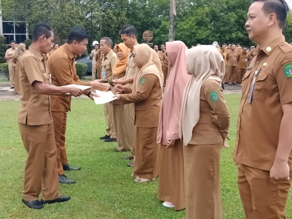 Dari dua belas orang yang menerima SK Kenaikan Pangkat secara simbolis hanya tujuh orang yang mengfikuti apel pagi. Sementara lima orang lainnya belum diketahui apakah sedang ada tugas kantor atau alasan lainnya.