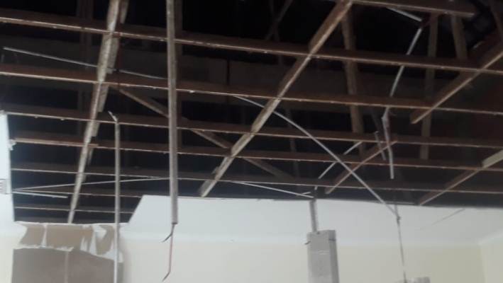 Erwinsyah mengungkapkan, dugaan sementara ini hasil dari pemeriksaan kami bahwa struktur rangka plafon masih utuh, hanya sebagian plafon gypsum saja yang runtuh.