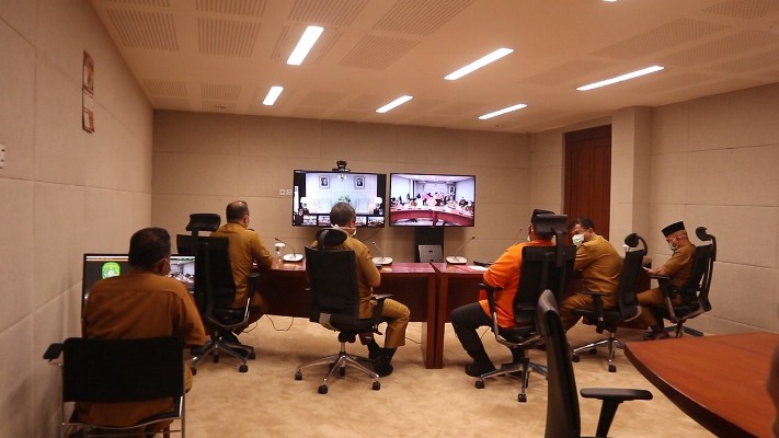 TENGGARONG - Ditengah wabah virus corona (covid-19) Pemkab Kukar tetap melaporkan Laporan Keuangan Pemerintah Daerah (LKPD) tahun anggaran 2019 kepada Kepala Perwakilan BPK RI Kaltim disaksikan Gubernur Kaltim melalui Video Converence (Vicon) Selasa (31/3).