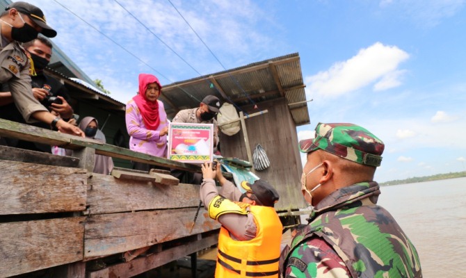 TENGGARONG - Setelah kemarin membagikan paket sembako di sebagian wilayah Tenggarong, Polres Kukar dan Kodim 0906 Tenggarong kembali membagikan paket sembako Rabu (15/4).