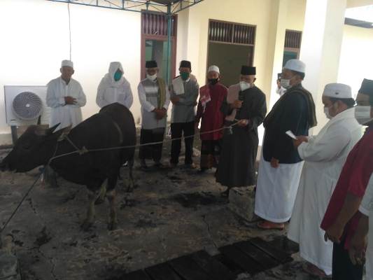 Usai pelaksanaan Sholat Idul Adha, Wakil Bupati Kukar Chairil Anwar secara simbolis menyerahkan satu ekor sapi bantuan dari Pemkab Kukar. (one)