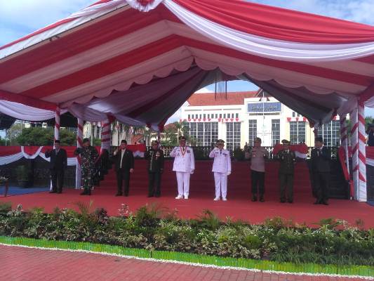TENGGARONG (Kutairaya.com) - Meskipun pelaksanaan Upacara Memperingati HUT RI ke 75 tahun 2020 berbeda dari tahun sebelumnya karena masih pada masa pandemi Covid-19, namun pelaksanaan upacara tersebut yang dipimpin Bupati Kukar Edi Damansyah di halaman kantor Bupati Kukar Senin (17/8) berlangsung khidmat, tertib dan lancar.