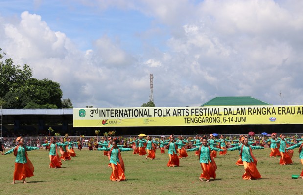 Erau International Folkore Art Festival 2015 Kabupaten Kutai Kartanegara, Minggu (7/6) siang kemarin resmi dibuka oleh Esthy Reko Astuty, Deputi Bidang Pengembangan Pemasaran Pariwisata Nusantara pada Kementerian Pariwisatadi Lapangan Stadion Rondong Demang Tenggarong, yang dihadiri pula Ketua BPK RI, Ketua Komisi III DPR RI, Gubernur Kaltim, Pengdam, Kapolda, Walikota Balikpapan, Walikota Bontang dan jajaran pejabat di lingkungan Pemerintah Kutai Kartanegara.
