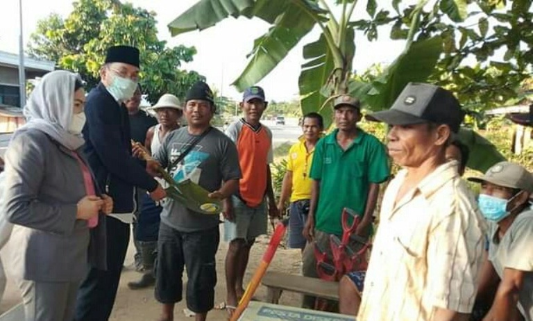TENGGARONG (KutaiRaya.com) - Sebagai bentuk kepedulian Fraksi Gerindra kepada para buruh yang bekerja di penumpukan pasir di Desa Teluk Dalam, Kecamatan Tenggarong Seberang setelah aksi mereka viral melaksanaan upacara bendera Hari Kemerdekaan pada Agustus 2020 lalu, memberikan bantuan puluhan sekop pekan lalu.