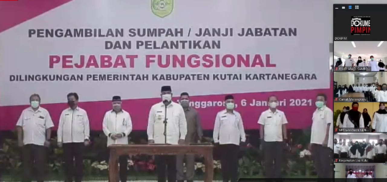 "Pada hari ini sesuai dengan ketentuan yang berlaku maka bapak ibu saudara-saudara sekalian dilantik dan diambil sumpahnya untuk duduk dalam jabatan fungsional," ungkap Bupati Kukar Edi Damansyah.
