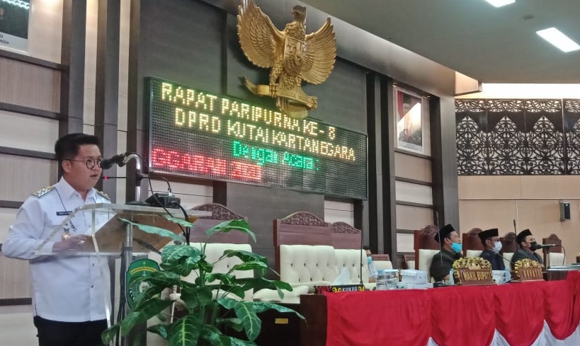 (Wakil Bupati Rendi Solihin saat menyampaikan LKPJ Bupati Kukar Tahun 2020 di Ruang Sidang Rapat Paripurna DPRD Kukar)