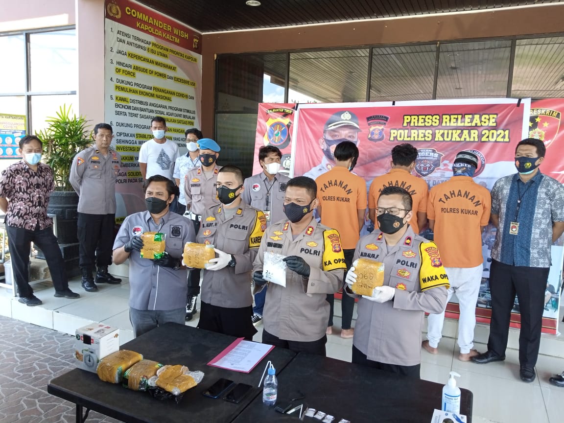 Kapolres Kukar AKBP Irwan Masulin Ginting, didampingi Wakapolres Kukar Kompol Aldi Alfa Faroqi, Kabag Ops Polres Kukar AKP M. Aldy Harjasatya dan Kasat Resnarkoba Polres Kukar IPTU Encek Indrayani dalam press release kepada awak media Jum'at (16/4/2021) mengatakan, untuk TKP penangkapan ketiga tersangka, yakni di Dusun Mekar Jaya Rt. 10 Desa Karang Tunggal Kecamatan Tenggarong Seberang Kukar, kemudian Jalan Suryanata GG, H. KUNI Kelurahan Air Putih kecamatan Samarinda Ulu Kota Samarinda dan Jalan Slamet Riyadi RT 022 Lok Tuan Kecamatan Bontang Utara Kota Bontang pada Kamis, 15 April 2021 sekira pukul 09.00 wita.