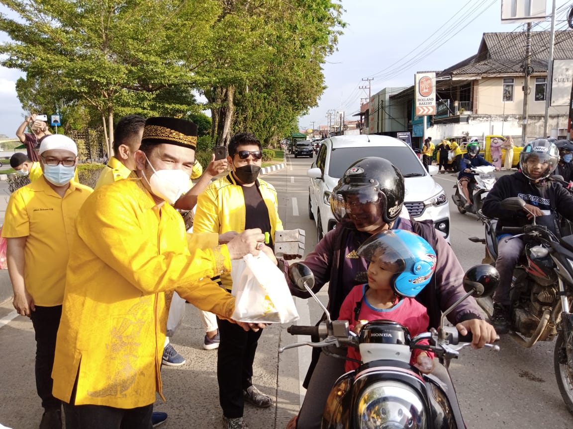 (Ketua DPD Golkar Kukar Hasanuddin Mas'ud bersama Fraksi Golkar DPRD Kukar membagikan takjil ke masyarakat)