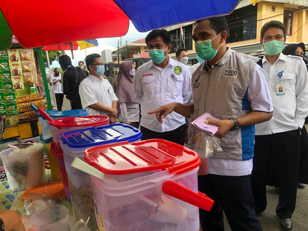 Tim BBPOM Samarinda didampingi Sekda Kukar saat mengambil sampel makanan dan takjil di Pasar Ramadhan Tenggarong)