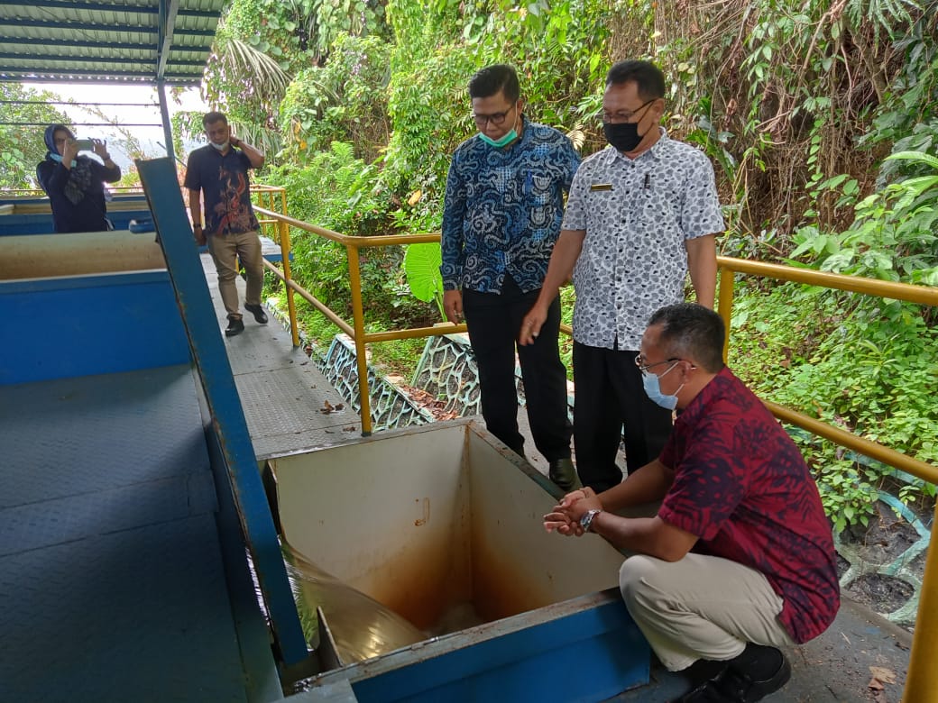 (Dirut Suparno dan Dirtek Perumda Tirta Mahakam Sutrisno saat meninjau proses produksi air bersih)