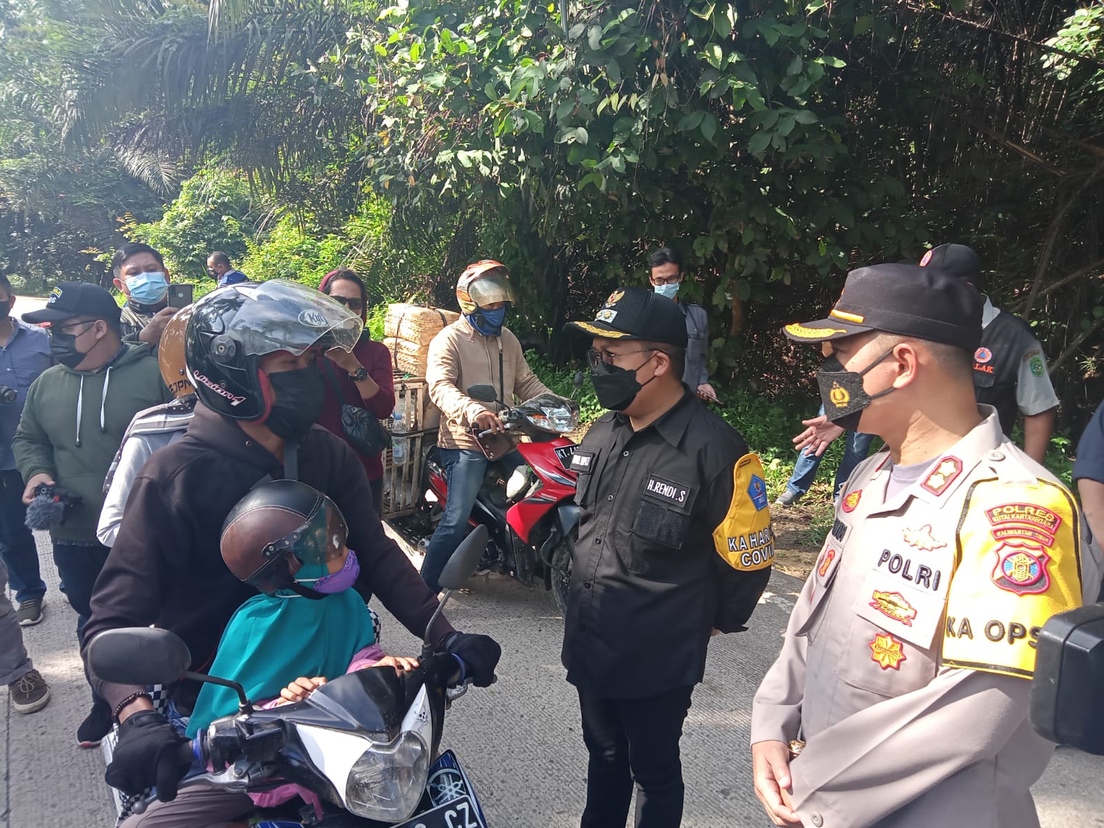 (Wakil Bupati Kukar Rendi Solihin didampingi Kapolres Kukar saat memantau pengendara yang ingin masuk ke Tenggarong di Posko Penyekatan di jalur 2 poros Tenggarong Seberang)