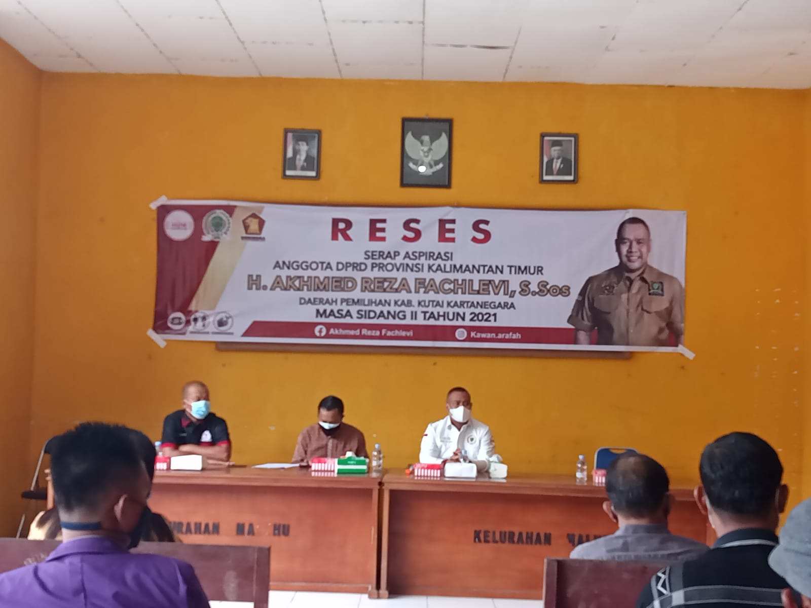 Kali ini reses yang kedua Anggota Komisi II DPRD Kaltim H. Akhmed Reza Fachlevi, dilaksanakan di Kantor Kelurahan Maluhu Kecamatan Tenggarong Kukar, dengan tetap menerapkan protokol kesehatan ketat, belum lama ini.