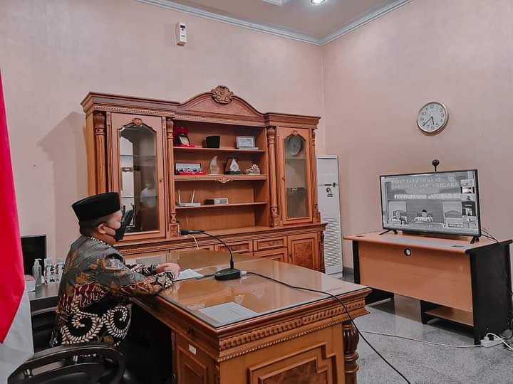 (Wakil Bupati Kukar Rendi Solihin saat menyampaikan Laporan Realisasi Semester Pertama APBD dan Prognosis secara virtual pada Rapat Paripurna ke 10 Masa Sidang III DPRD Kukar, di ruang kerjanya Lantai II Kantor Bupati Kukar)