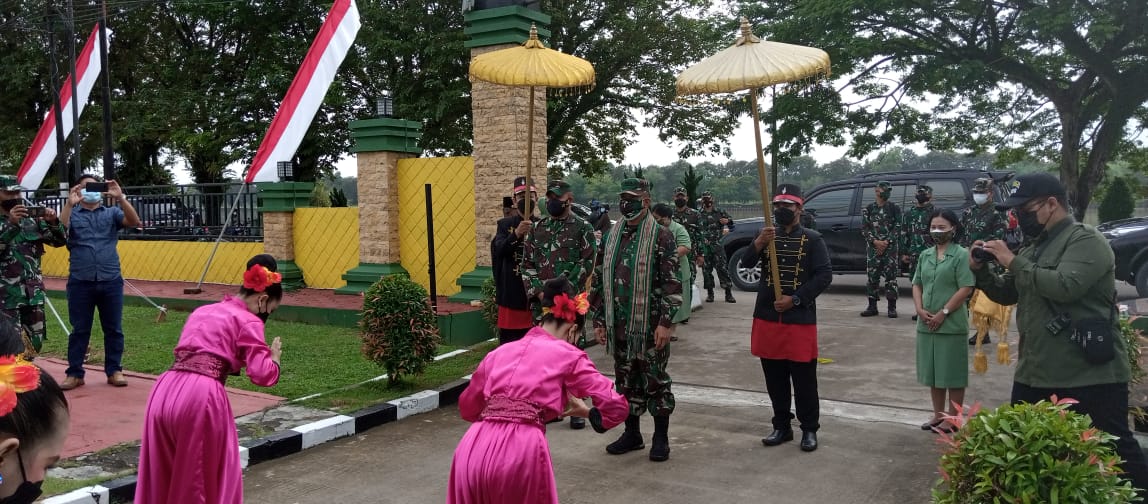 (Tim Penilaian Lomba Binter disambut tradisi Tepong Tawar dan Tarian Jepen di Makodim 0906 Kukar)