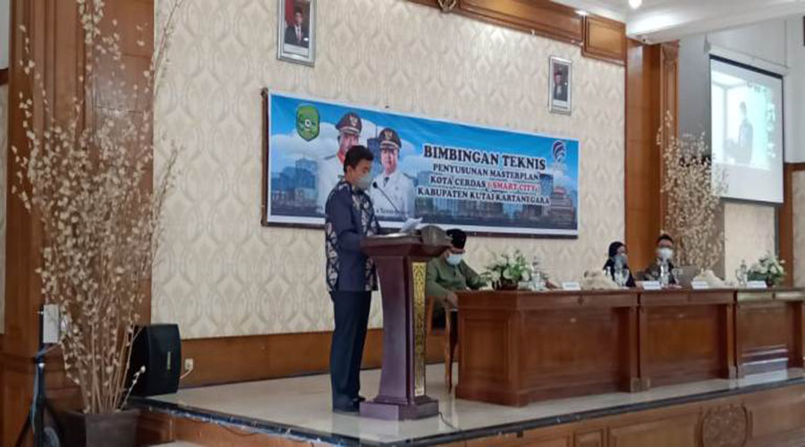 TENGGARONG,(KutaiRaya.com)- Sekretaris Daerah (Sekda) Kukar H Sunggono membuka Bimbingan Teknis (Bimtek) penyusunan kota cerdas Smart city Kabupaten Kutai Kartanegara yang dilaksanakan Diskominfo Kukar, di Pendopo Wakil Bupati, Senin (27/9/2021).
