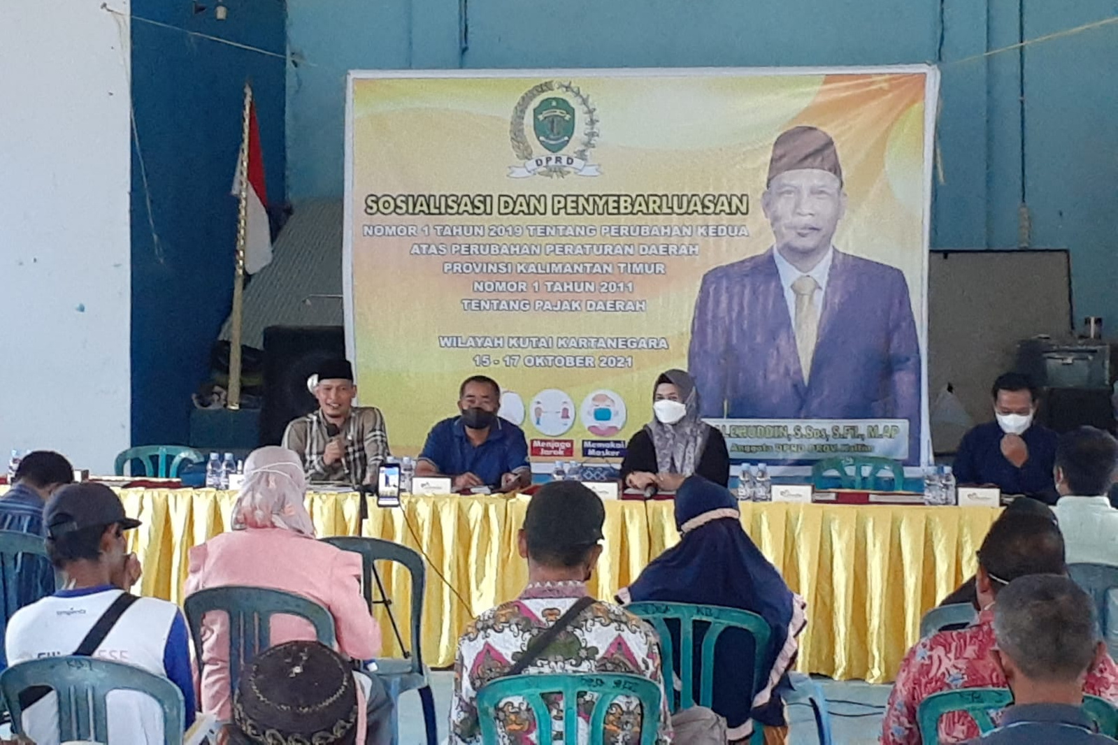 KUKAR (KutaiRaya.com) - Sekretaris Komisi IV DPRD Kaltim Salehuddin S.Sos, S.Fil, M.Si, kembali melaksanakan kegiatan kedewanan setiap bulan yakni Sosialisasi dan Penyebarluasan Perda nomor 1 tahun 2019, tentang perubahan kedua atas Perda nomor 1 tahun 2011 tentang pajak daerah.