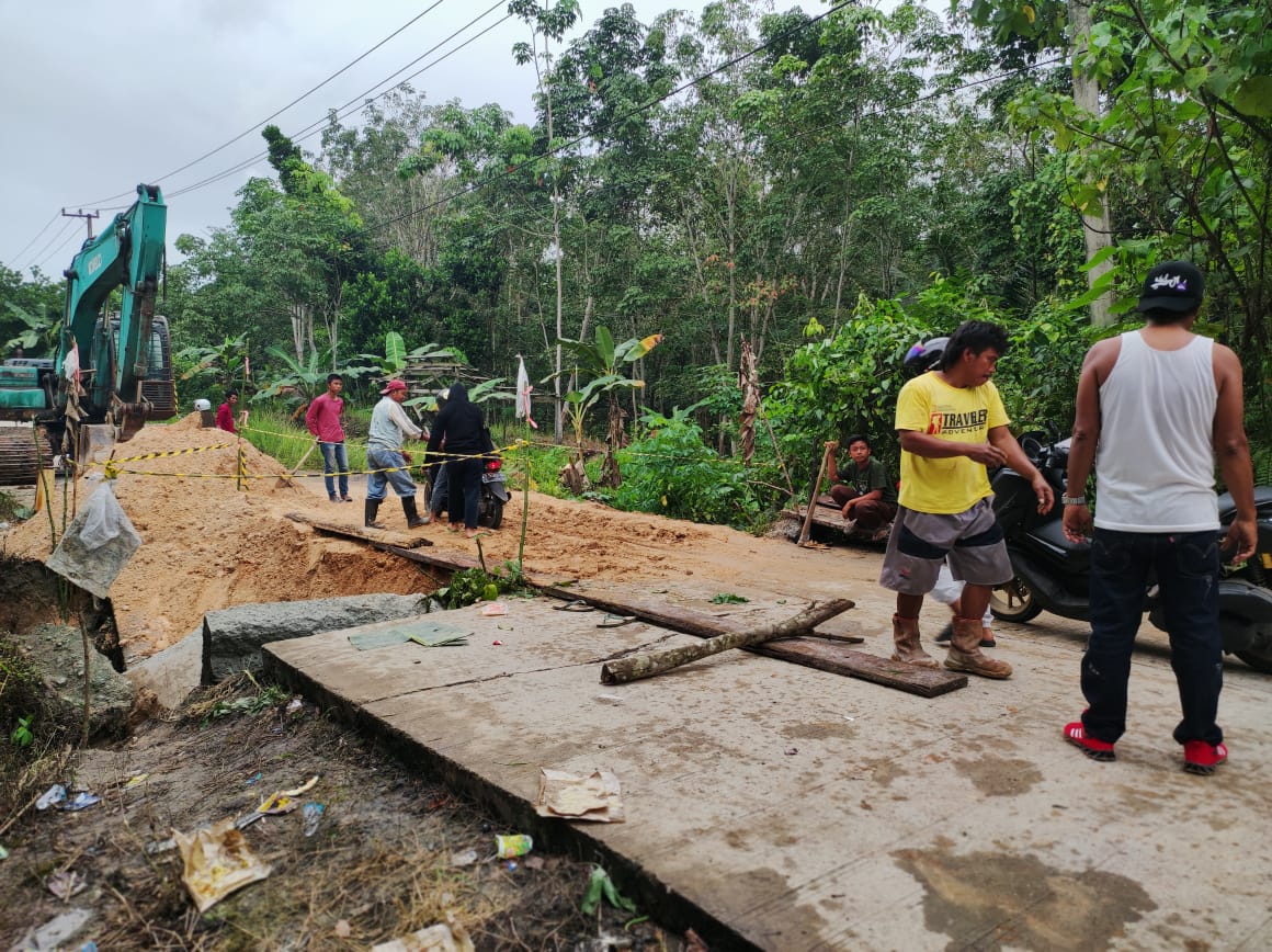 Dari informasi yang dihimpun media ini dilokasi, akses jalan jembatan amblas ini berada diantara dua Desa yakni Desa Sebuntal dan Desa Bunga Putih dan langsung di respon warga sekitar, dengan bantuan alat seadanya warga turun bergotong royong memperbaiki akses tersebut.