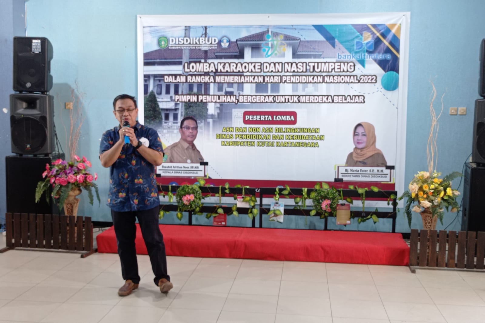 TENGGARONG, (KutaiRaya.com) Dinas Pendidikan dan Kebudayaan (Disdikbud) Kutai Kartanegara (Kukar) menggelar Lomba Karaoke dan Nasi Tumpeng, dalam rangka memeriahkan Hari Pendidikan Nasional 2022, Bertempat di Kantor Disdikbud Kukar Kamis (19/5/2022).