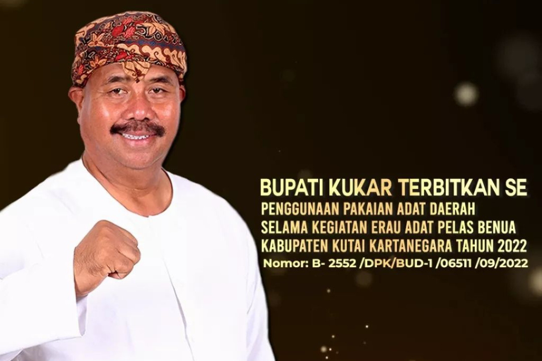 TENGGARONG, (KutaiRaya.com) Berdasarkan Surat Edaran Bupati Kabupaten Kutai Kartanegara (Kukar) Edi Damansyah Nomor B-2552/DPK/BUD-1/06511/09/2022 yaitu Tentang Penggunaan Pakaian Adat Daerah Selama Kegiatan Erau Adat Pelas Benua Kabupaten Kutai Kartanegara Tahun 2022.