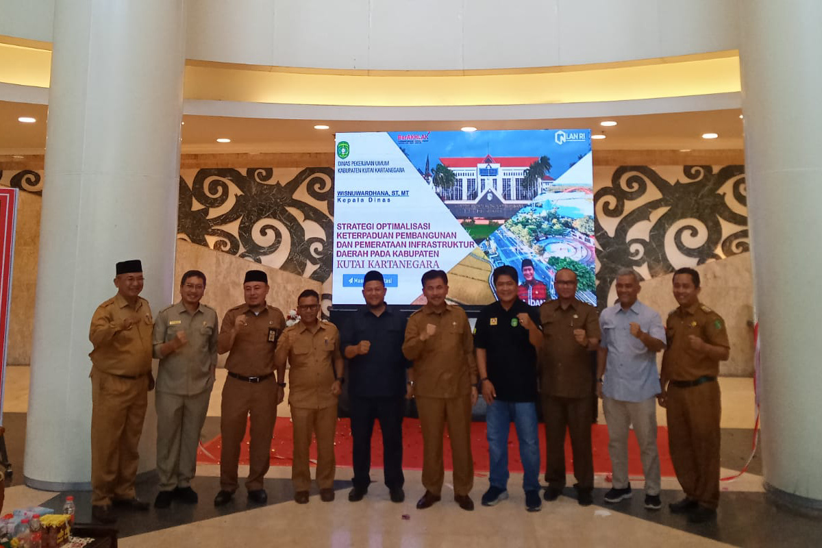 Sekda Kukar Sunggono menyampaikan ucapan selamat dan sukses kepada Wisnu Wardhana selaku Kepala Dinas Pekerjaan Umum Kabupaten Kukar atas keberhasilannya menyelesaikan Laporan Implementasi Aksi Perubahan dalam rangka mengikuti Pelatihan Kepemimpinan Nasional II Angkatan XIV LAN RI Samarinda dengan judul Strategi Optimalisasi Keterpaduan Pembangunan dan Pemerataan Infrastruktur Daerah pada Kabupaten Kukar,