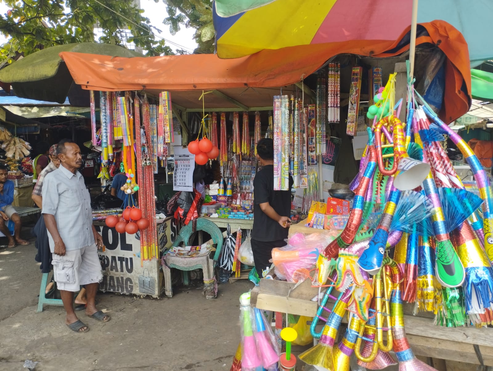 Ia menyebutkan ada beberapa jenis terompet dan kembang api yang dijual dari mulai harga Rp 10.000 sampai Rp 50.000, selain itu ada juga mainan yang saat ini yang sedang banyak dicari oleh anak-anak yaitu lato-lato dengan harga yang terjangkau yaitu Rp 10.000.