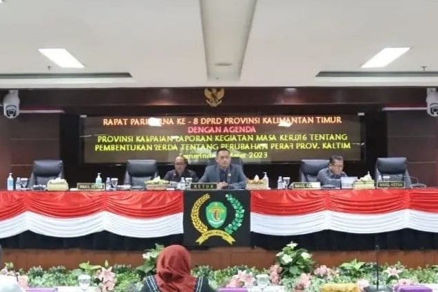 SAMARINDA (KutaiRaya.com) - DPRD provinsi Kaltim menggelar rapat Paripurna ke 8, berlangsung di Gedung D Lantai 6 kantor DPRD Provinsi Kaltim, Rabu (01/03/2023).