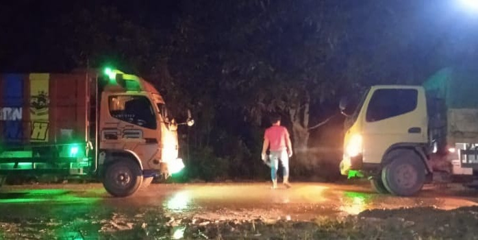 (Jalan poros Desa Loleng Kecamatan Kota Bangun saat dilintasi mobil truk)