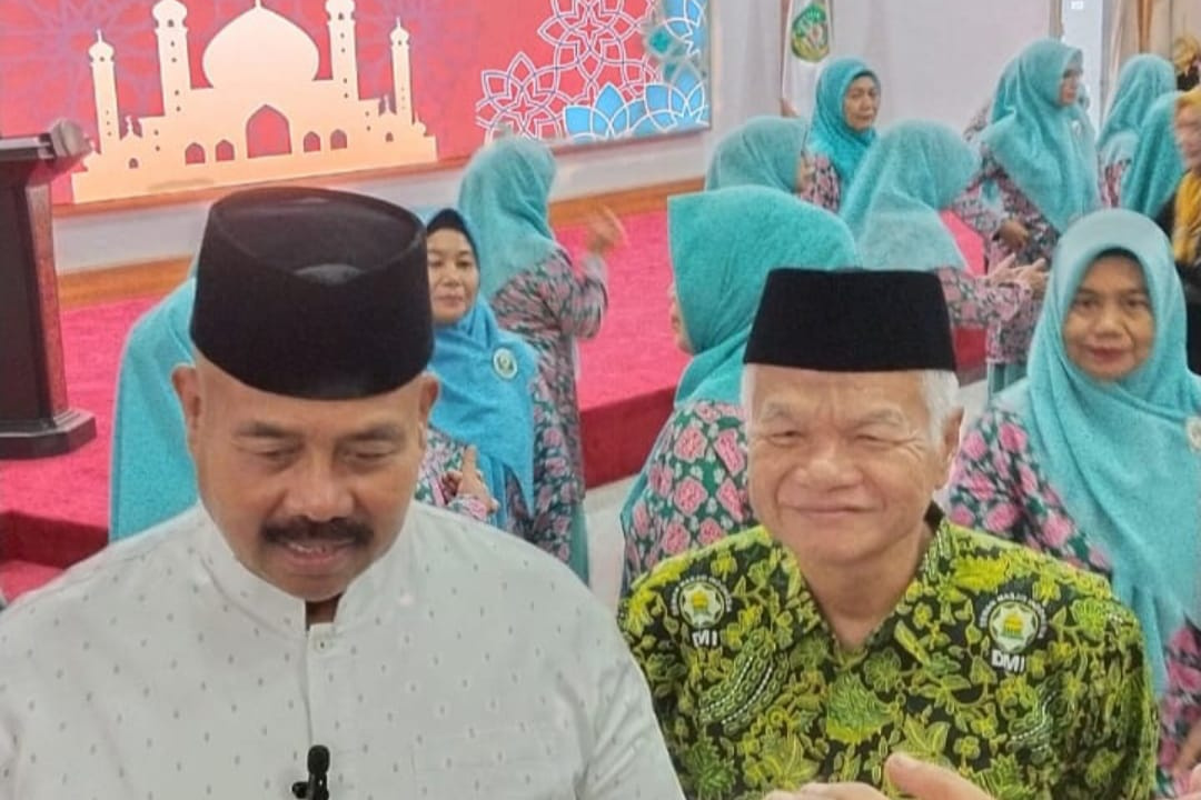(Bupati Kukar Edi Damansyah didampingi Ketua DMI Kukar HM Bisyron saat pelantikan pengurus PD BKMM DMI Kukar)