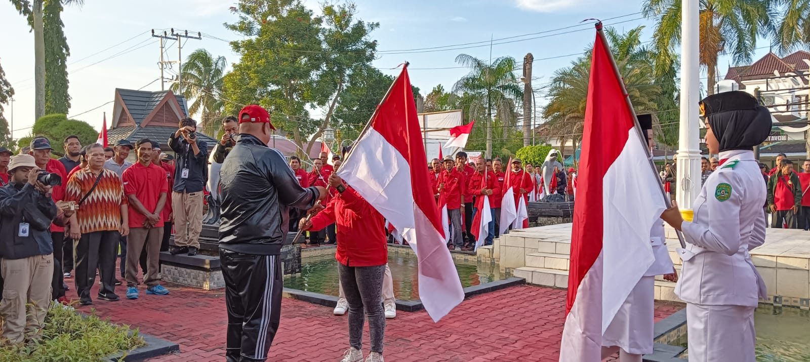 "Setelah ini kami menuju ke Kecamatan Tenggarong Seberang dan seluruh peserta ini membagikan bendera ke lingkungan-lingkungan masyarakat di seluruh kecamatan. Pada hari ini kita fokus di dua titik di Kecamatan Tenggarong dan Kecamatan Tenggarong Seberang." kata Edi.
