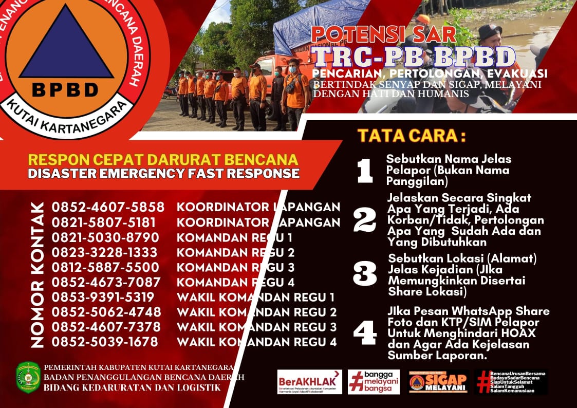 Kepala Bidang Kedaruratan dan Logistik BPBD Kukar Abdal, mengatakan penyiapan dan publikasi nomor kontak ini merupakan langkah kongkrit yang dilakukan pemerintah Kabupaten Kukar melalui BPBD Bidang Kedaruratan dan Logistik.