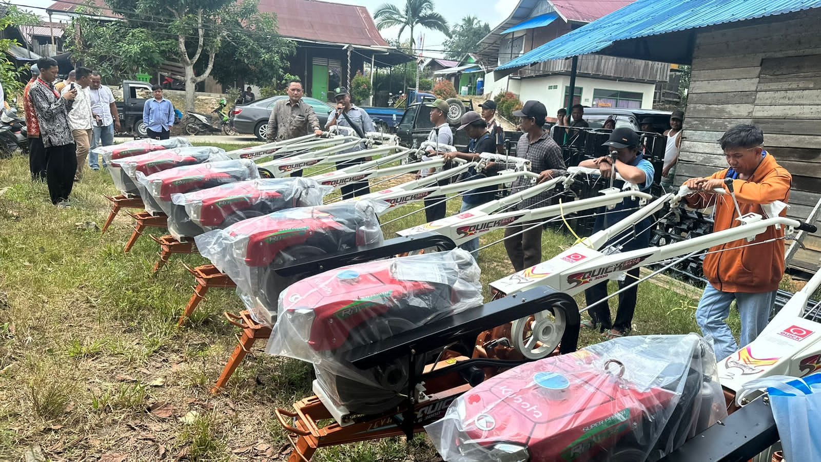 KUKAR (KutaiRaya.com) - 13 Kelompok Tani di Kecamatan Tenggarong Seberang menerima bantuan hand traktor yang langsung diserahkan Seno Aji di Desa Bukit Pariaman, Tenggarong Seberang, Minggu (29/10/2023).