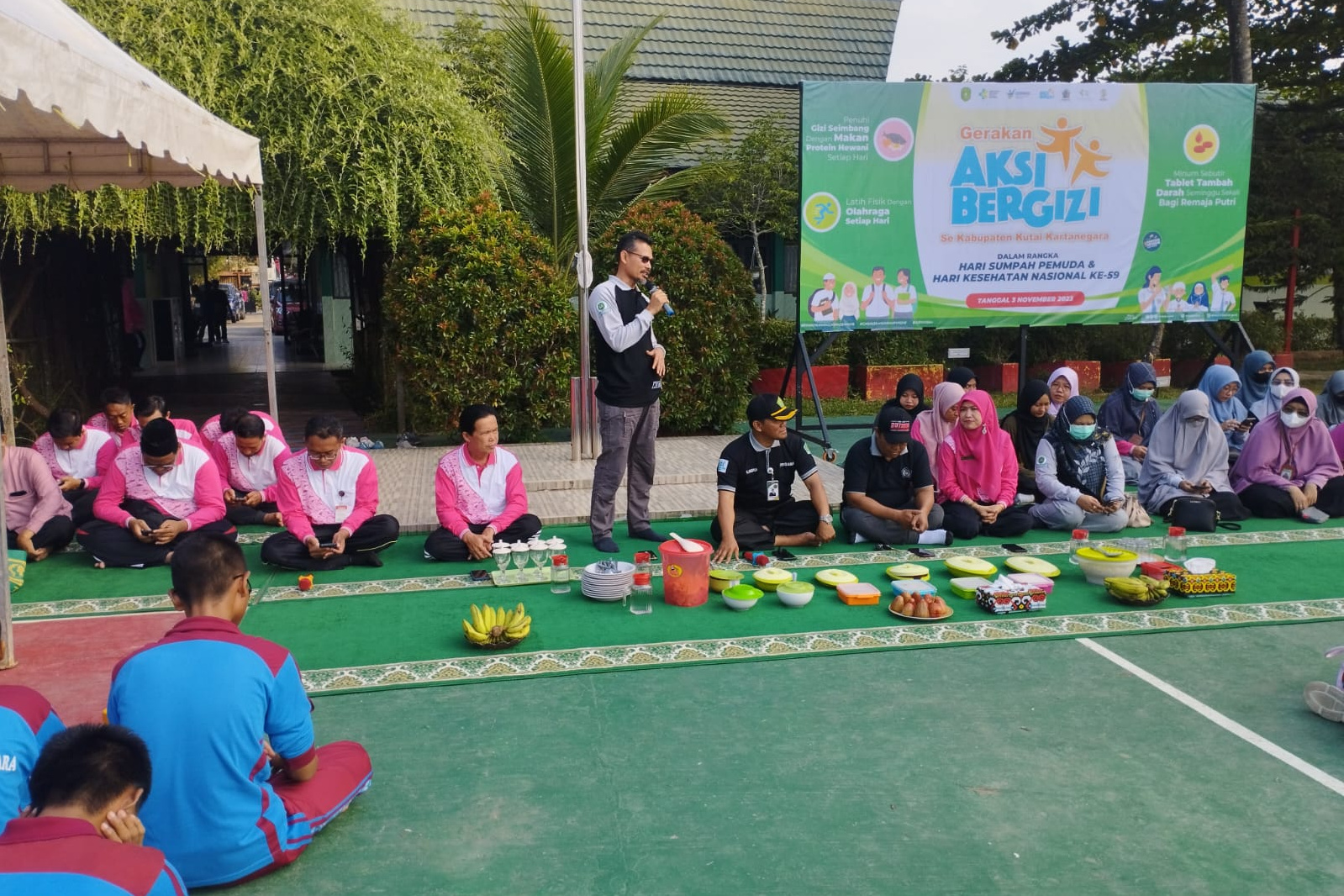 TENGGARONG (KutaiRaya.com) - Dinas Kesehatan (Dinkes) Kabupaten Kutai Kartanegara menggelar Gerakan Aksi Bergizi serentak di 32 titik sekolah Se-Kabupaten Kutai Kartanegara, yang dipusatkan di lapangan MAN 2 Kukar, Jum