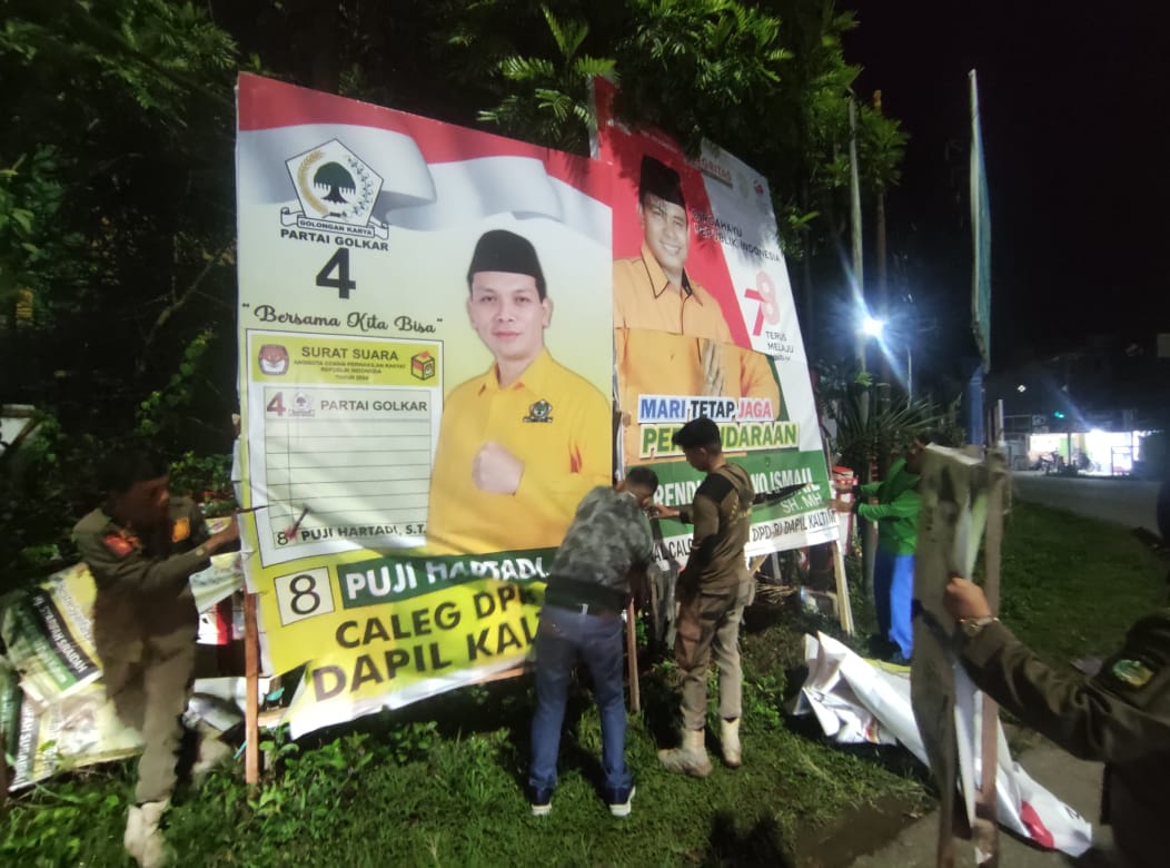 TENGGARONG, (KutaiRaya.com) Badan Pengawas Pemilu (Bawaslu) Kabupaten Kutai Kartanegara (Kukar) melakukan penertiban Alat Peraga Kampanye (Algaka) yang melanggar aturan di wilayah Kecamatan Tenggarong pada Kamis malam (2/11/23). Penertiban ini melibatkan tim gabungan yang terdiri dari Satpol PP, Polres Kodim 0906 Kukar, Dinas Perhubungan, Panwaslu Kecamatan Tenggarong, dan Linmas.