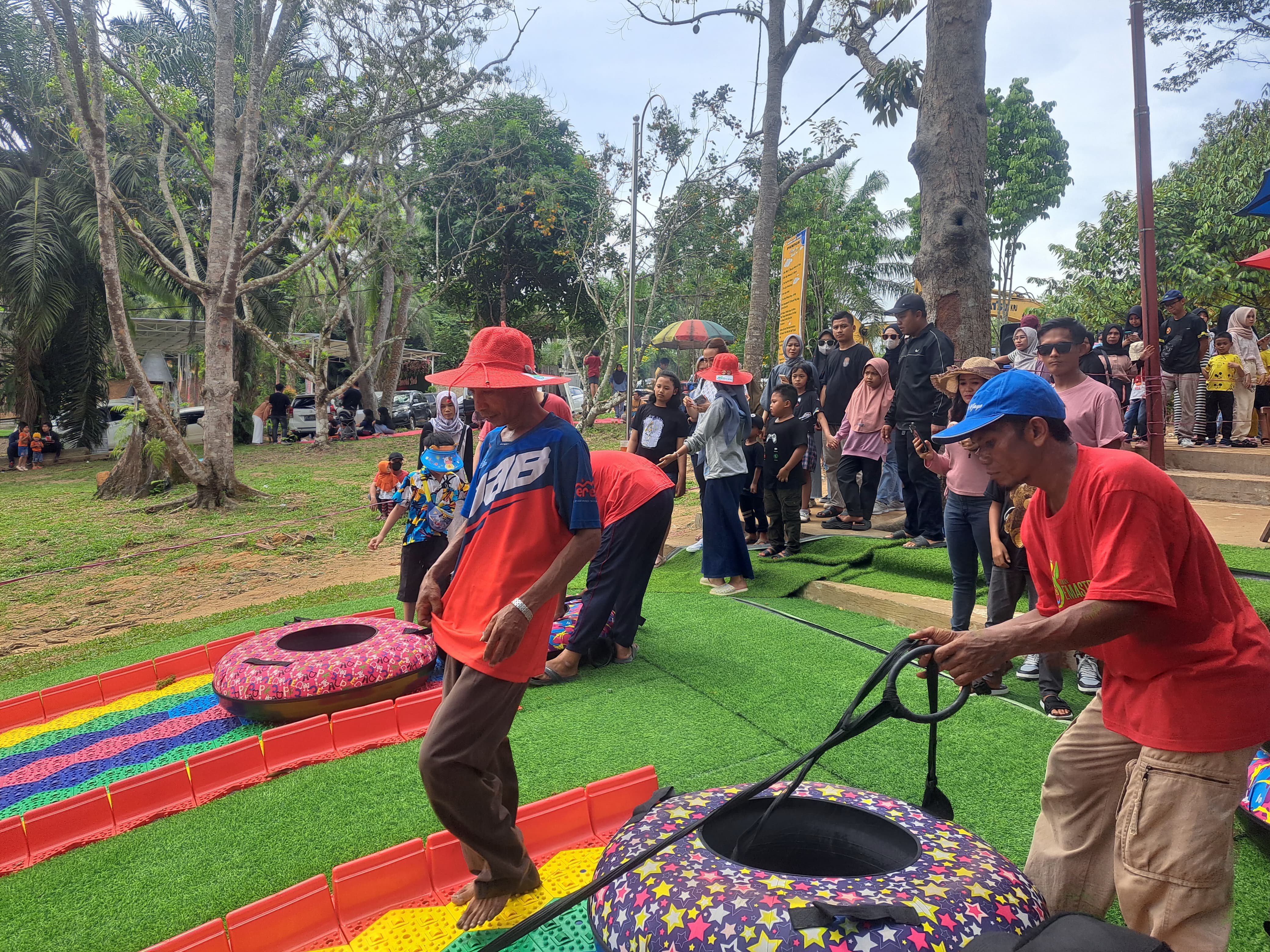 TENGGARONG, (KutaiRaya.com) Wahana permainan Rainbow Slide (Perosotan Pelangi) menjadi daya tarik Wisata Emastri Garden yang terletak di Jalan Soekarno-Hatta Km. 17, Desa Batuah, Kecamatan Loa Janan, Kutai Kartanegara (Kukar). Banyak wisatawan yang rela datang dari berbagai daerah untuk merasakan sensasi wahana tersebut.