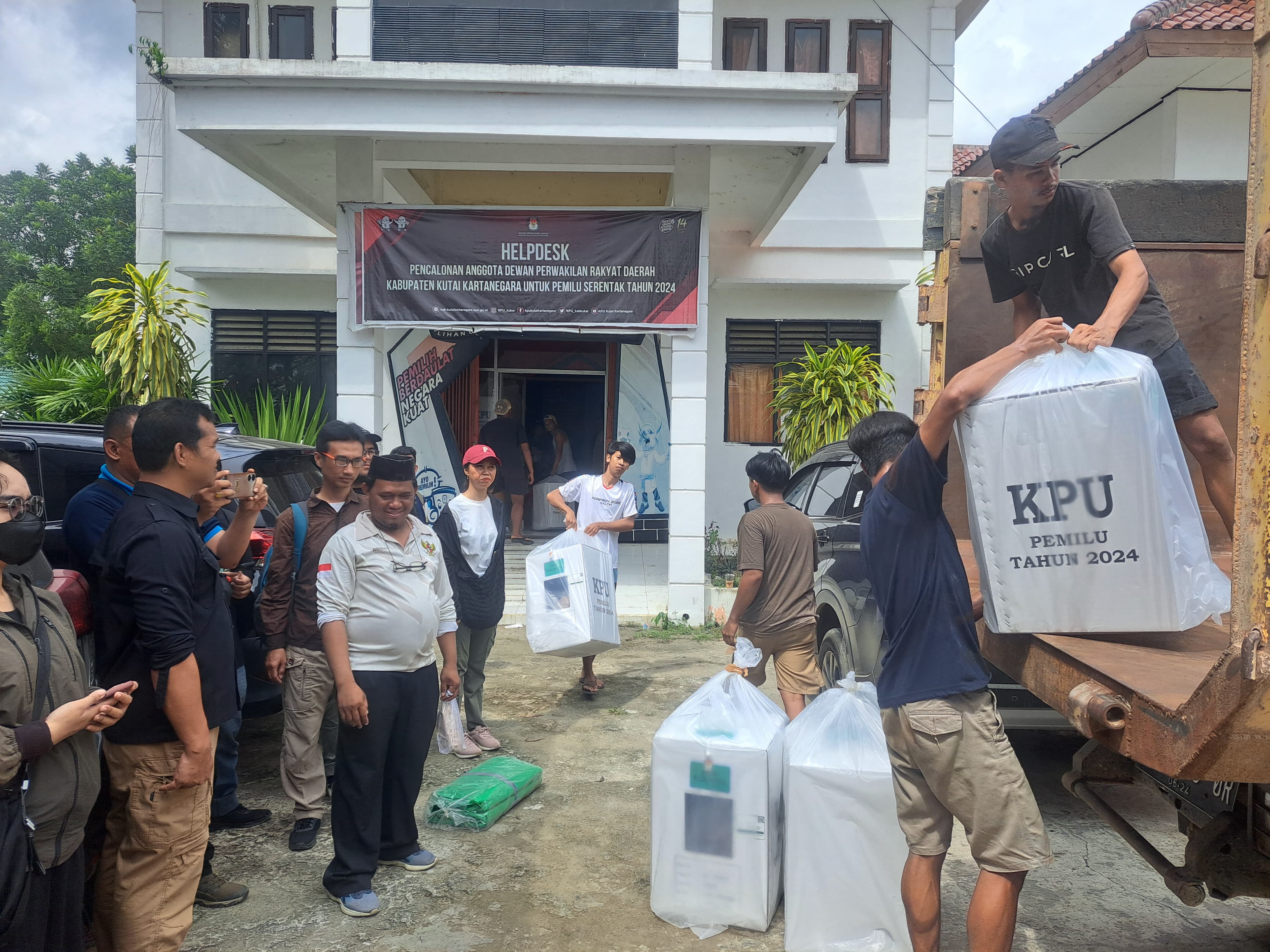 Logistik pemilu tersebut didistribusikan dari gudang KPU Kukar menuju kecamatan yang berada di dapil VI. Proses distribusi diawasi ketat oleh Bawaslu, Kepolisian, dan unsur dari KPU.