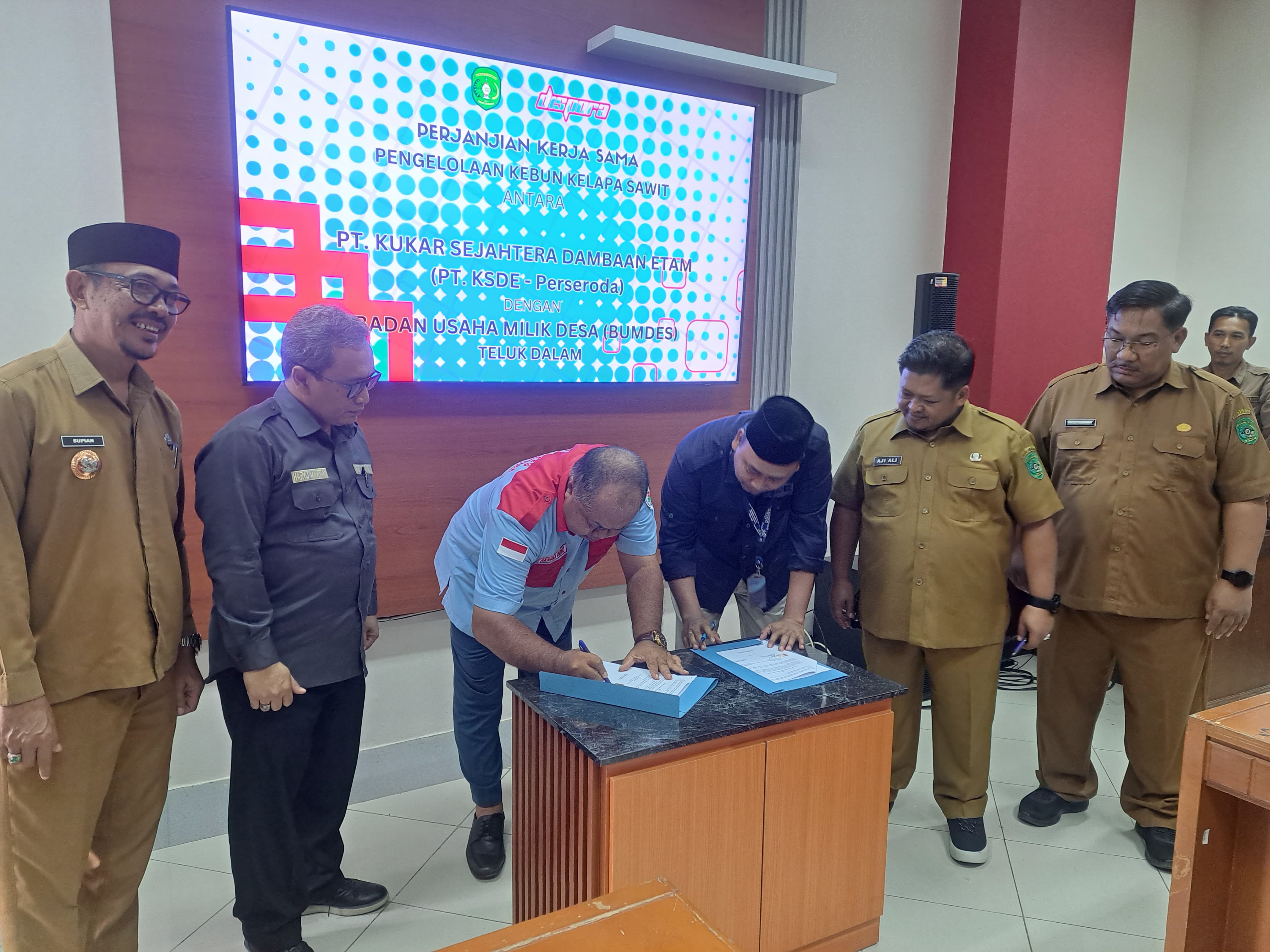 TENGGARONG, (KutaiRaya.com) PT. Kukar Sejahtera Dambaan Etam (PT. KSDE) bekerja sama dengan Badan Usaha Milik Desa (BUMDES) Teluk Dalam, Tenggarong Seberang sepakat melakukan penandatanganan kerasajama, dalam pengelolaan kebun kelapa sawit yang terletak di kompleks Stadion Aji Imbut. Kerjasama ini bertujuan untuk memberdayakan masyarakat setempat dan meningkatkan lapangan kerja.