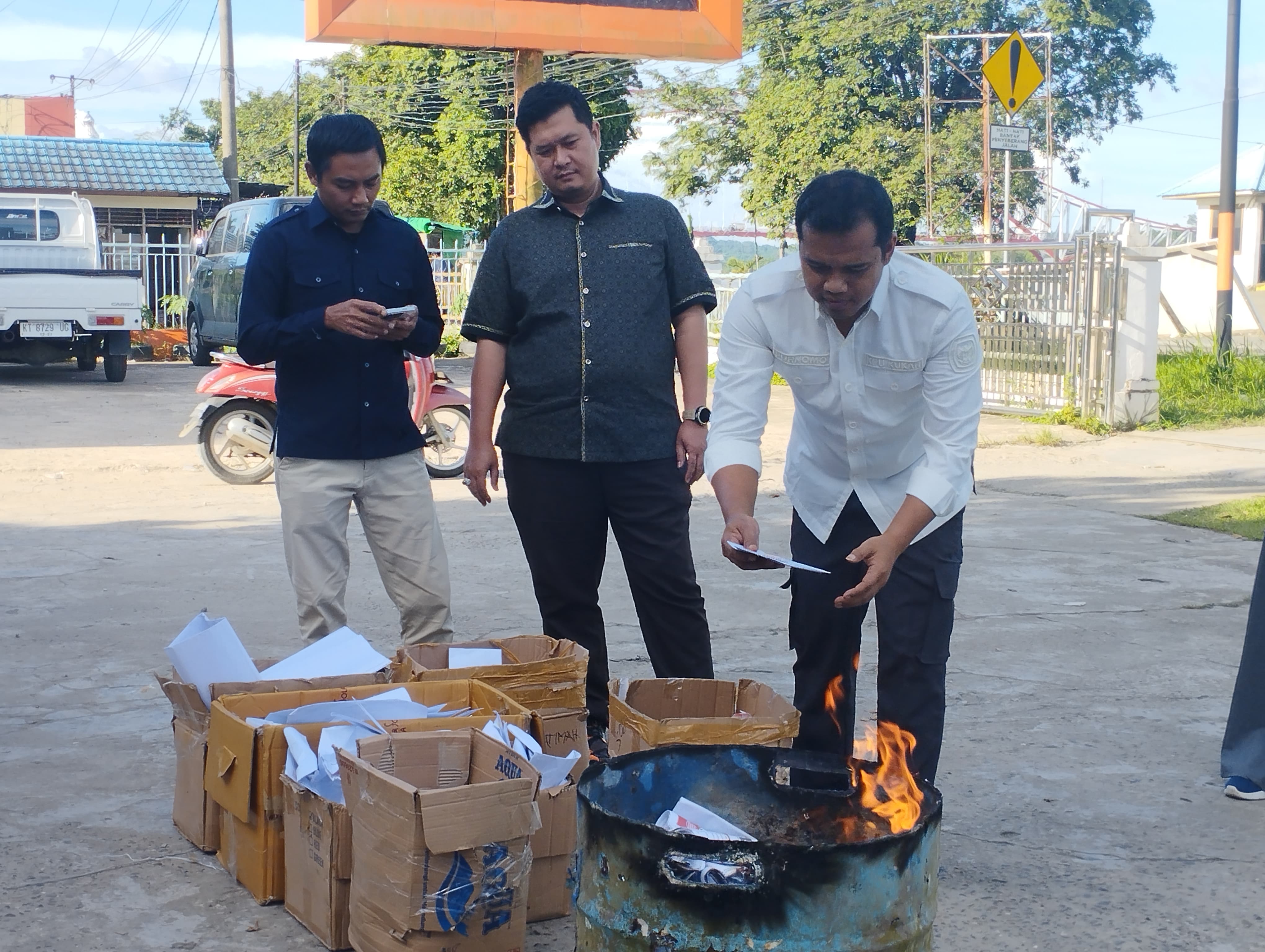Dalam pemusnahan tersebut dipimpin langsung oleh Ketua KPU Kukar Purnomo, didampingi Anggota KPU Muchamad Amin,turut dihadiri perwakilan dari Polres Kukar dan Bawaslu Kukar.