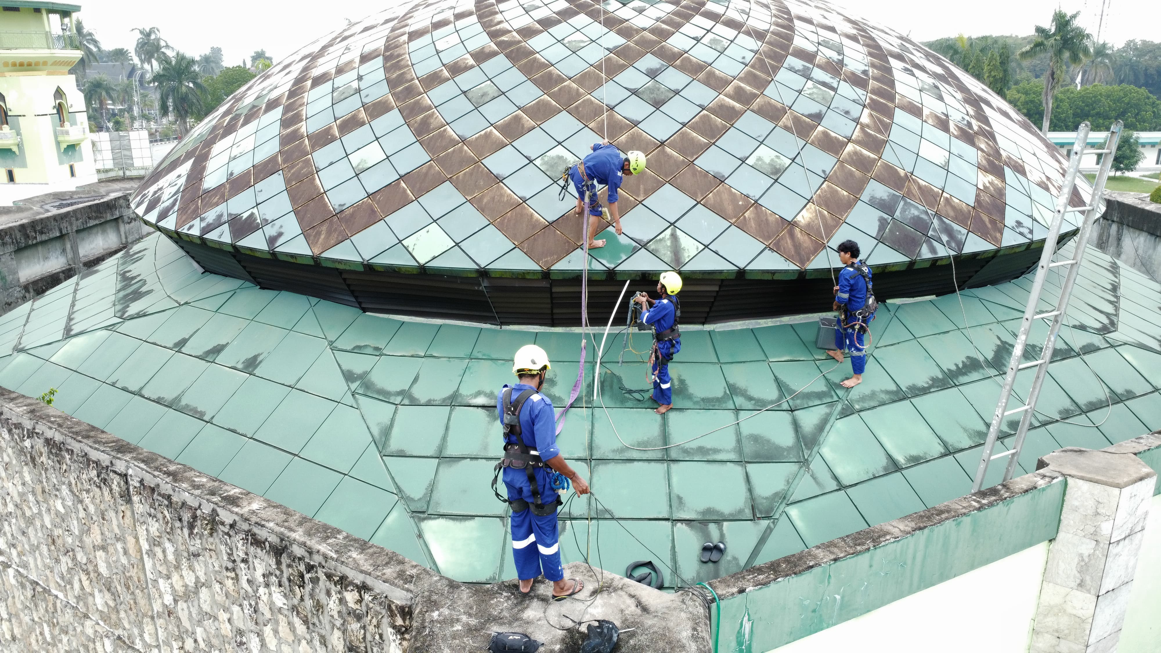 Ia mengatakan, berkaitan dengan hal tersebut, kita bekerja sama dengan profesional dalam hal ini pelaksanaannya dari PT Primata Hutama Nusantara dari Samarinda, mereka memang profesional dibidangnya membersihkan di gedung-gedung tinggi, dalam hal untuk membersihkan kubah tersebut.